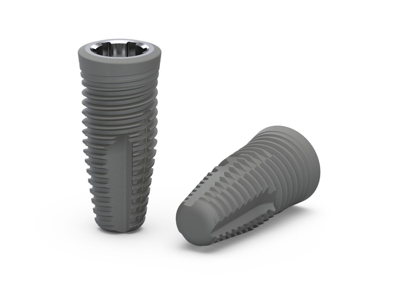 The rougher surface on the threaded implant body stimulates bone to form more rapidly and with greater strength at the implant surface, allowing for earlier loading protocols.